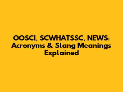 OOSCI, SCWHATSSC, NEWS: Acronyms & Slang Meanings Explained