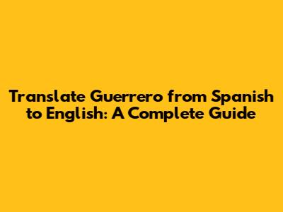 Translate 'Guerrero' From Spanish To English: A Complete Guide
